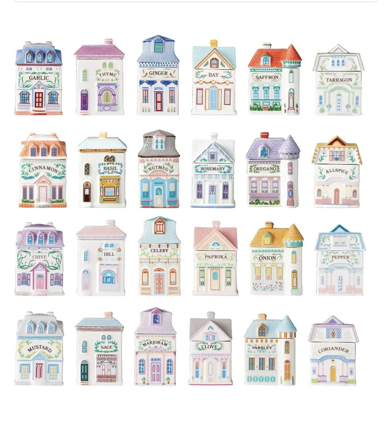 Take a pinch of ginger from a Georgian townhouse. Parsley from a Queen Anne villa. And a dash of pepper from your Swiss chalet! As lovely and whimsically nostalgic as our original 1989 collection, this 24-piece Second Edition of The Lenox Spice Village is here to bring storybook charm to your kitchen and your cooking. Each pretty pastel jar features artisan-crafted and hand-painted details that make each one special! Slight variation in color, texture, form, and finish are expected and a testament to the individual craftsmanship and one-of-a-kind beauty of each piece. May it spice up your life and sprinkle joy into your world every day!