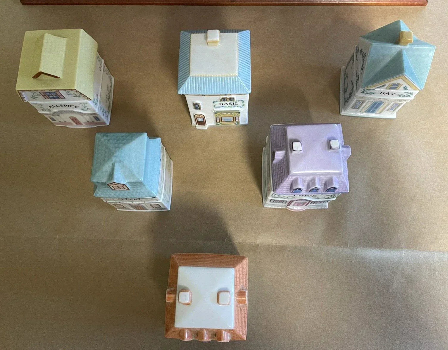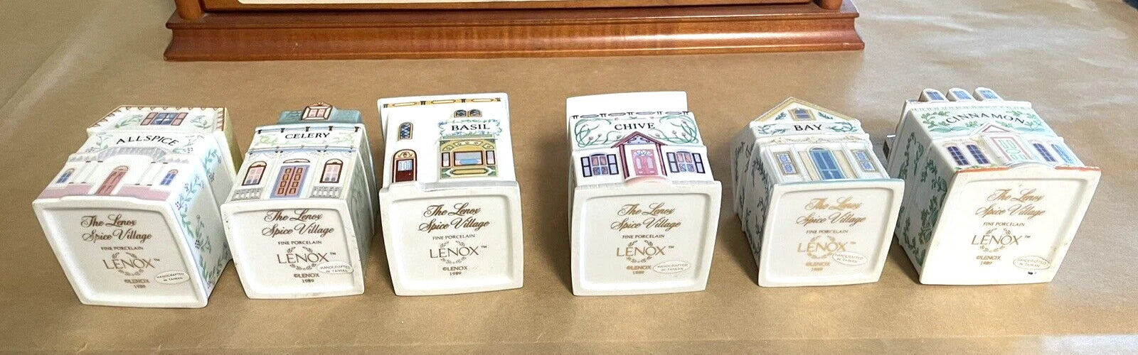 Rare Vintage Porcelain Lenox Spice Village & Wooden Rack, 24 Spice Cottages, Very Good Condition, No Chips/Cracks, 1989, Vivid Colors, Beautiful